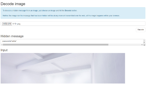 PNG파일을 디코딩하여 숨겨진 비밀번호는"white" 이다.