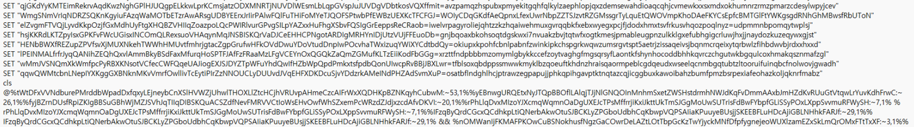 SET 명령은 기본적으로 사용하도록 설정 된 명령 확장이며 다른 매개 변수 없이 사용하는 경우 설정 현재 환경 변수 설정을 표시가 가능하다. (배치 파일 .bat을 실행하는 매개변수들을 실행 시키는 것으로 예상)