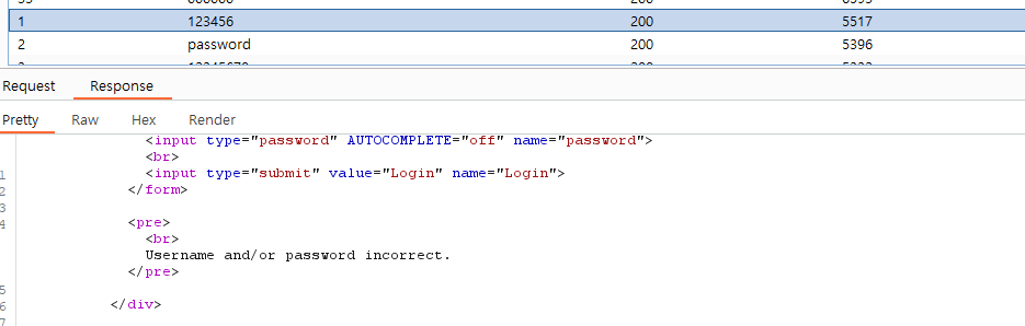 Response received 값은 'password' 3번째 부분만 달라 비밀번호를 'password'를 입력 했을 때 로그인이 됐을 거라 볼 수 있다.