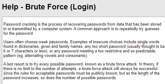 '사용자는 종종 약한 비밀번호를 선택합니다. 안전하지 않은 선택의 예로는 사전에서 찾을 수 있는 단어 하나, 이름과 성, 너무 짧은 비밀번호(일반적으로 6~7자 이하로 생각됨), 너무 제한적이고 예측 가능한 패턴(예: 모음과 자음을 번갈아 가며 사용)을 충족하는 비밀번호가 있습니다.'