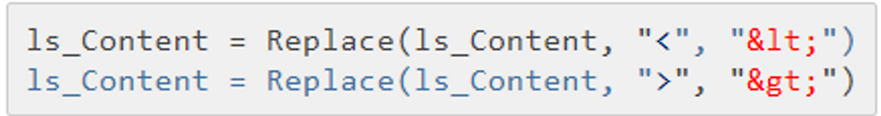 태그 사용을 제한하기 위해 태그 문자(<,>)는 HTML Entity 형태로 치환하여 입력된 태그 문자는 문자열로만 인식되도록 구현한다.