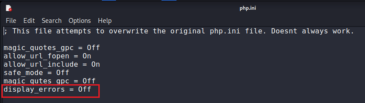 - WAS 설정 파일(위 예시는 php 설정 파일)에서 에러메시지는 출력 되지 않도록 설정해야 한다.