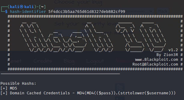 Hash-identifier 도구를 활용하여 해당 비밀번호는 MD5형식으로 암호화가 되어 있다.