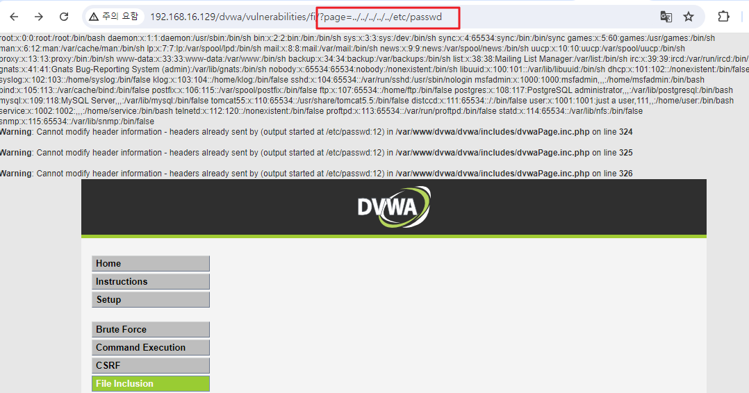 - LFI 공격에 성공하여 해당 시스템 정보 파일이 include 되어 출력되는 모습을 위 사진에서 확인할 수 있다.