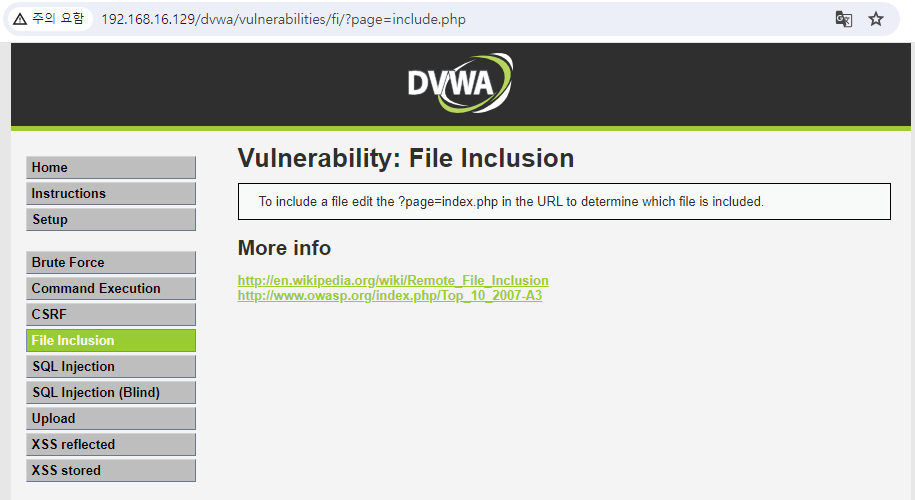 - URL을 확인하면 include.php 라는 파일을 include 하여 해당 페이지를 출력하는 것을 확인할 수 있다.