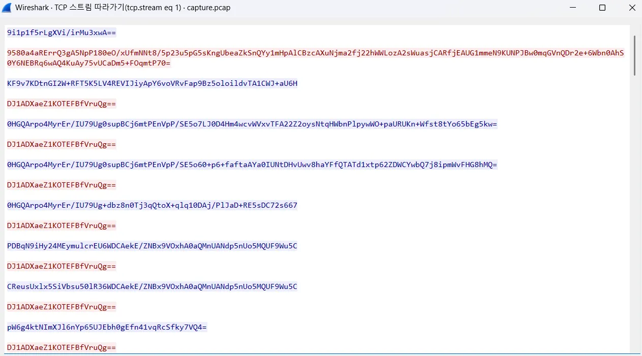 - 역방향 쉘을 실행 시킨 이후 TCP 통신이 암호화 되어 있음.