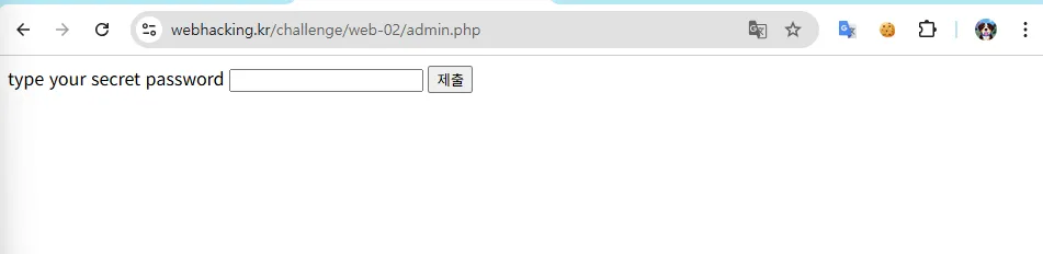 admin.php 페이지에 접근하면 패스워드를 입력하는 페이지가 존재한다.