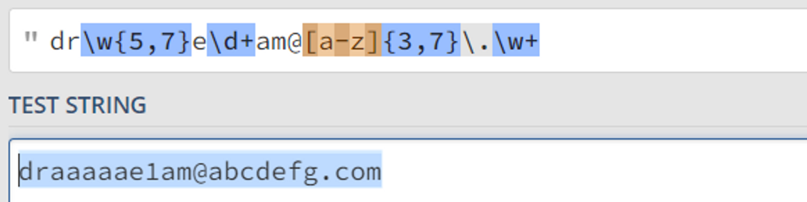 [a--z]{3,7} = a~z까지 의 알파벳 3글자에서 7글자 표현