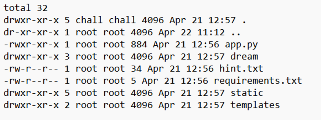 Flag는 ./dream/hackhello 경로에 있다고 나옵니다.
